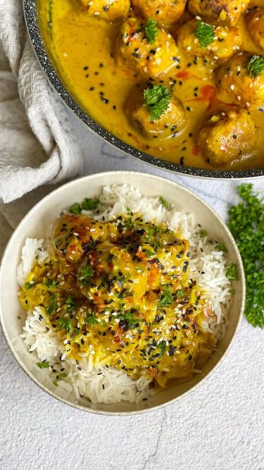 Toto keď som videla vyzeralo strašne chutne tak som to musela vyskúšať je to síce sýte postačí vám trochu na tanieri, ale pochutila som si. Mam rada jedlá bez mäsa. 😋👌stačí mi raz do týždňa 1 balenie fazule cannellini 1 tofu 1 lyžica cibule 3 strúčiky cesnaku 1 lyžica sójovej omáčky himalájska soľ čierne korenie 20 g strúhanky panko 1 lyžica petržlenovej vňate Na omáčku: 1/2 cibule 3 strúčiky cesnaku 1 čajová lyžička karí korenia 1 čajová lyžička kurkumy soľ čierne korenie 1 čajová lyžička miso pasty 1 kokosové mlieko 1 čajová lyžička kukuričného škrobu voda 1/2 čajové lyžičky mletej papriky 1/2 čajové lyžičky mletej rasce 2 lyžice olivového oleja Na dokončenie: 1 lyžica olivového oleja 1 čajová lyžička mletej papriky sezam petržlenová vňať 200 g ryže Basmati #dnesjem #vkuchyni #dnesjim #dobrejedlo #mojejedlo #foodporn #dnesjimfit #dnesjemzdravo #dnesjimzdrave #zdravejedlo #zdraverecepty #veganske #veganrecipes #veganrecept #veganrecepty #veganskerecepty #dnesvarim #obed #dnesobedujem