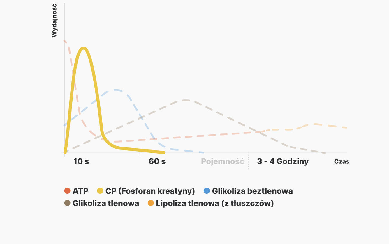 Kreatyna występuje całkowicie naturalnie w naszym organizmie, głównie w komórkach mięśniowych w postaci fosforanu kreatyny, który uczestniczy w wytwarzaniu energii. Suplementacja kreatyną pozwala jednak zwiększyć zapasy fosforanu kreatyny (CP) aż o 20–40%.