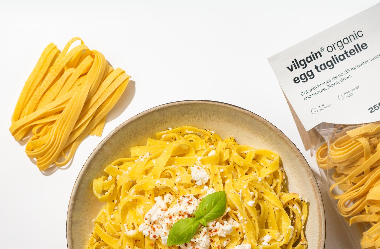 Vilgain Tagliatelle BIO to ekskluzywny makaron jajeczny wytwarzany z semoliny. A kiedy mówimy "ekskluzywny", naprawdę mamy to na myśli w każdym znaczeniu tego słowa - składniki pochodzą z kontrolowanych upraw ekologicznych z małego rodzinnego gospodarstwa w północnych Włoszech, a produkcja odbywa się w miły, uczciwy, staromodny sposób.