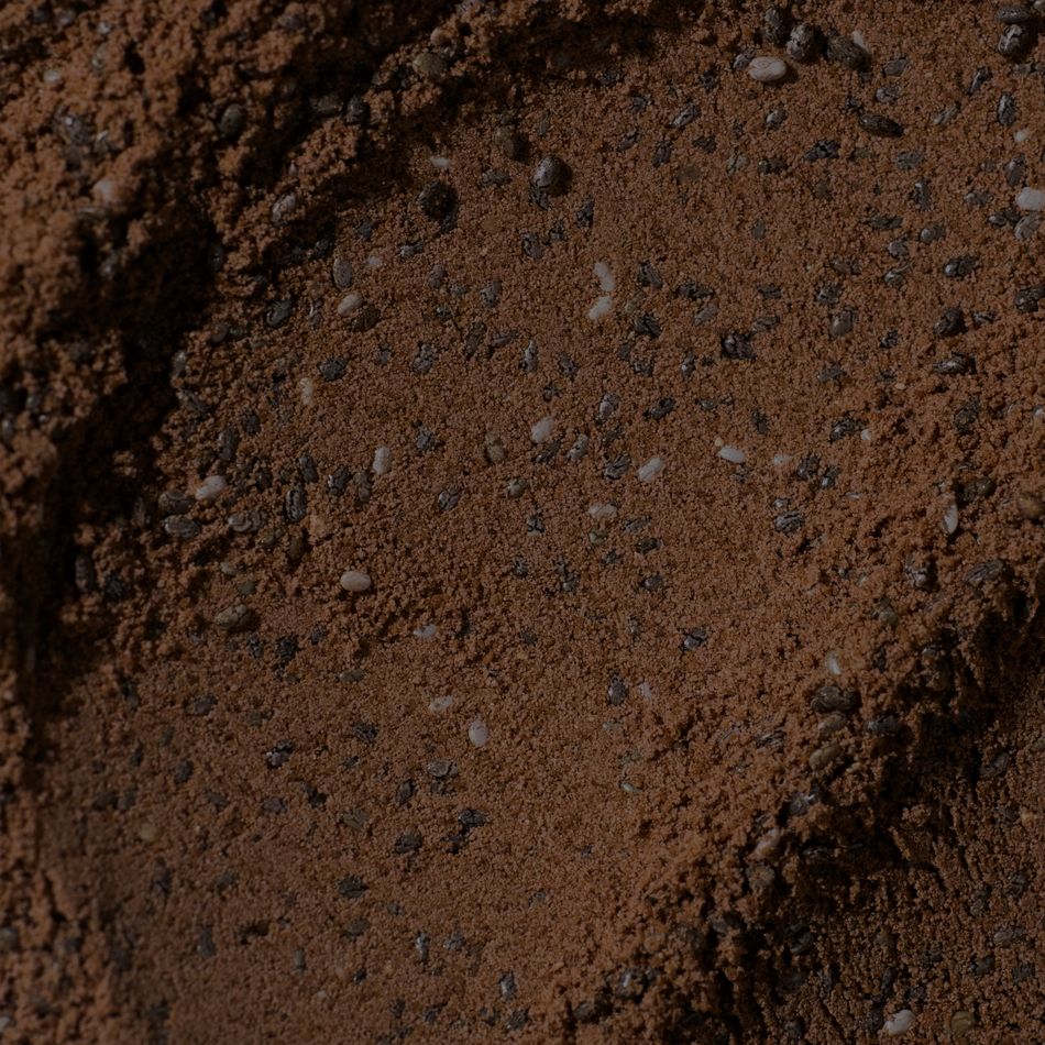 Nasiona chia (Salvia hispanica) 41,4 %, cukier kokosowy*, izolat białka serwatkowego 11,7 % (mleko, emulgator: lecytyna słonecznikowa), suszone mleko kokosowe*, kakao w proszku* 6,5 %, cynamon 1,5 %, krem arachidowy w proszku*, mielona wanilia, sól morska.